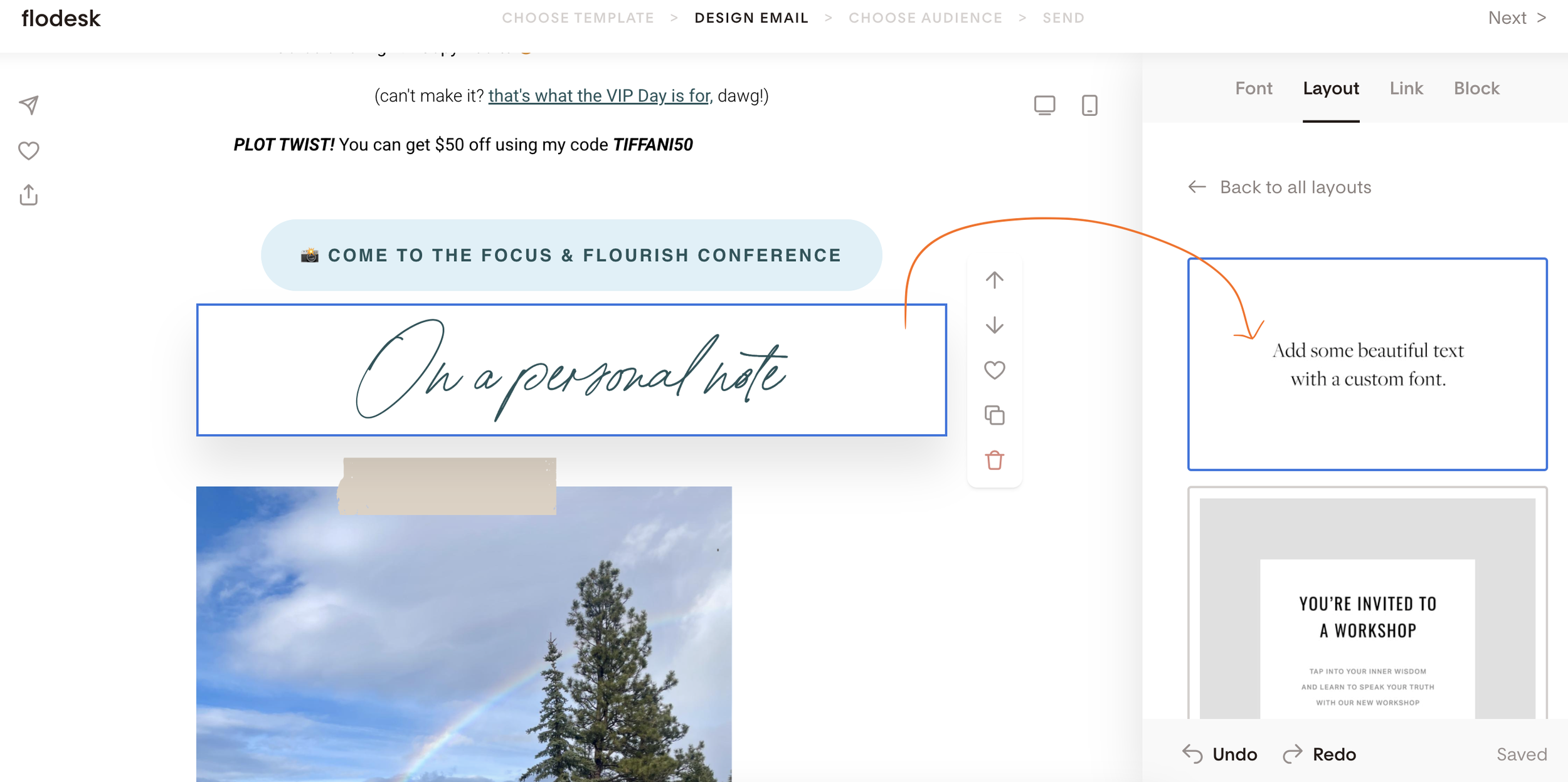 And you sure as shit don’t need to create a fancy newsletter on Canva and then reupload it into Flodesk every week.